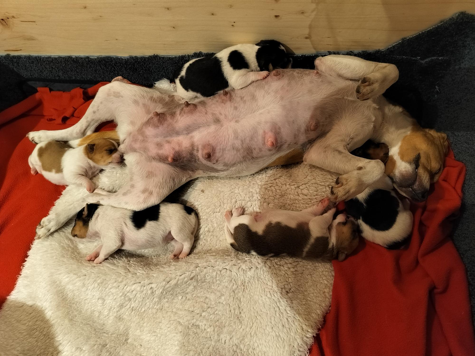 Am 7. November um 6.55 Uhr war es soweit. Greta hat einen gesunden Wurf mit 3 Jungen und 2 Mädchen geboren.